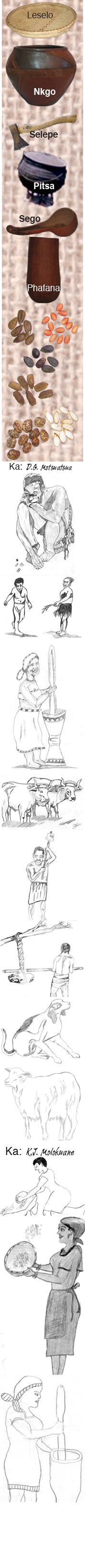 LENYALOFa go rulaganngwa tiro ya lenyalo, go simololwa ka go isiwa lefoko pele kwa gaabo mosetsana. Lefoko le isiwa ke bagolo ba mosimane fa ba fetsa ba boa ba ya go buisana le bagolo ba mosetsana ka ga tsa magadi. Ka Setswana magadiGO TLHOKA PELEGIGo tlhoka pelegi go ne go tsewa e le bothata jwa basadi mme mo ma bakeng mangwe go bonala e le gore rre ke e na a nang le bothata. Mosadi o ne a kgobotlediwa fa a sa tshole bana a bediwa ka maina a a sa siamang, ka dinako dingwe o ne a ka busediwa gae gotswa kwa bogadi, mme gompieno go na le basadi ba ba sa ntseng ba tshwaragane le bothata jo. Le fa bothata e le jwa ga rre go ne go itshelwa moriti o tsididi mme go supiwe mosadi ka monwana ka gone go sa diriwe diteko tse di tlaa supang gore matsapa di a tsaya kae, ka di nako dingwe bagolo ka botlhale jwa bona, ba ne ba bona gore matsapa di a tsaya kae. Gompieno re sa ntse re bona basadi ba ba utswang bana go leka go kgotsofatsa balekane ba bona le gore ba seka ba kgobiwa. Ka lenyalo le lelapa le le kitlaaneng le ne le le botlhokwa mo Setswaneng go ne gona le tharabololo ya mathata a pelegi.Tharabololo ya Monna: Fa monna a sena pelegi mme bagolo ba lemoga se, bakgona go dira di thulaganyo tsa gore morwarragwe e ka nna mogolowe kgotsa monnawe a tsene ka soba la phokojwe le mosadi wa gagwe go fitlhelela mosadi a nna ratla la tlou. Ngwana yo o tlaa tsholwang e tla nna mojaboswa wa monna yo ka ba amana ka madi e bile o tla gola a itse e le rraagwe. Le fa se e le tharabololo ka di nako dingwe e nna bothata fa mosadi a sa batle thulaganyo e, mme a ka seka a e ganetsa. Bothata jo bongwe e ka nna fa mosadi a ka kgatlhwa ke ka fa morwarraagwe monna wa gagwe a leng manontlhotlho ka teng ka nako ya tiragatso ya nakwana, mme a nna le keletso ya leruri. Potso ke gore fa go ntse jaana bagolo ba kganna jang maikutlo a ba a rumutseng a. Tharabololo ya Mosadi: Fa mosadi e le ena a nang le bothata jwa pelegi ka setso go dirwa dithulaganyo tsa gore mongwe wa bana ba gaabo wa mosetsana a tsewe ke monna wa gagwe jaaka mosadi wa bobedi gore a tle a mo tsholele bana. Thulaganyo e e tlisa kgang e nngwe e e ka feleletsang e tsentse lefufa ga reng ga bana ba motho. MOTSETSIBotsetsi jwa setswana fa o sena go belega o tshwanetse o iphoke. O iphoka ka go nwa dipitsa tsa setswana jaaka makwati a mosetlha, phate ya ngaka, le tse dingwe. Fa o nwa dipitsa o tshwanetse go patlama ka nako tsotlhe gore teng e boele ma nnong. Go na le tshilwana yona e ya ka losika ga e tshware motsetsi mongwe le mongwe, fa o le wa losika lwa yona e itlhagisa fela fa o sena go belega. O bo o gadikega mo maleng o palelwa ke go Ja e bile o tlhatsa. Go re e fole o tshwanetse go alafiwa segolo ke Mme yo e kileng ya motshwara. Motho o go alafang tshilwana, o tsaya tshilwana a go e kolokotisetse, le wena o e kape o e kolokotisetse ko go e na, mme lo e kolokotisa jalo gotswa ka fa morago ga maoto. Lo dira jalo ga raro, mme laboraro o e tseela ruri, o tsamaya o sa gadime o ya go e latlha o bue o re tshilwana ntlogele. Ka nako e o saleng o belega ka yona go bewa mopakwana. Mopakwana o beelwa motsetsi le ngwana, gore go se ka ga tsena mongwe le mongwe mo ntlong ya motsetsi. Motsetsi morago ga gore a nwe dipitsa o tlhabelwa nku kgotsa podi gore a je serobe, e tle se mmerekise mala, se mo tlhatswe. O tlhapisiwa ka metsi a mantsi sedilwa mmele a be a tlodiwa ka mafura a nku e a e tlhabetsweng gore a fufulelwe e tle a sole. Fa a dirilwe jalo o tla tswa motlung a le montle a akotse letlalo la gagwe le bonala go re o ntse a le mo ntlong. Motsetsi o jela ka mogopo o motona a nwa motogo ka sekgapana. Ngwana fa a sena go aloga o beolwa moriri, o bo o latlhiwa le kolane katsatsi le le latelang go beelwa mmaagwe. Motsetsi o tshwanetse go ikgatlha mala fa a fetsa go belega go re motse o se ka wa tlhatloga. Fa motho a le moditlhabing, go ne go batliwa mme o letheka lekhutshwane, fa a fitlha fa go e na o folosa mosese wa ka fa gare wa letheka a mmetse ka ona mo ditlhakoreng, e be a e latlha, mme rago o tla gololosega a belege sentle. KBANABASIMANE LE BASETSANABotshelo jwa basimane le basetsana jwa se gompieno bo farologana le jwa maloba. Mo malobeng go ne gona le ditiro tsa basimane le tsa basetsana. Basimane ba ne ba dira ditiro tse di bokete. Ba ne ba tshwanetse go disa dikgomo, ba ithute go tsoma gore batle ba kgone go tsoga ba tlhokomela malapa a bona, le go thusa bo rre go dira di tiro tse dingwe jaaka go suga matlalo go ya kgonnye go betla go aga masaka le go nna batlhabani. Basimane ka bane ba tsewa jaaka bajaboswa ba ne ba rutiwa go tsaya di tshweotso ka di ngwaga tse di kwa tlase. Ditiro tsa basimane le basetsana di ne di dira gore botsalano jwa bone e seka ya nna jo bo gololosegileng, ka jalo kamano ya bone e ne e se motlhofo.Basetsana ba ne ba dira ditiro tse di motlhofo mogae, ba thusa bo Mme e bile ba rutiwa go tlotla basimane ka se, se tla thusa gore ba tsoge ba tlotla banna ba bona. Tiro ya basetsana e ne e le go apaya, go tlhatswa, go thuga le go sila mabele, go duba mmu wa go kgapa lelapa, go roka, go loga le tse dingwe. Basetsana ba ne ba rutiwa gore ba tshwanetse ba nne le banna ba ba tla ba tlhokomelang. Botsalano jwa basetsana le basimane ka bone bo se botona mo go kalo, se sene se thusa bagolo gore ba kgone ba ba tlhophele balekane pele bona ba ka itlhophela. Dithuto tsa kwa sekolong le tsona di ne di farologana go ya ka bong, fela gompieno baithute ba tsaya dithuto tsa bona go ya ka kgatlhego ya bona e seng go ya ka gore ke mosimane gongwe mosetsana. Botshelo jwa gompieno bo neela basimane le basetsana nako e ntsi ya go nna mmogo, ka gore batshameka mmogo e bile ba tsena sekolo le go dira dithuto tse di tshwanang. Botsalano jwa bone e nna jo bo tseneletseng thata. Basetsana ba kgona go dira ditiro tse di batlang maatla tse mo tlwaelong di neng di dirwa ke basimane, fela jaaka go dira kwa moepong mme basimane ba dira ditiro tsa go roka le go apaya tse di neng di tlwaelegile e le tsa basetsana. Fa basimane le basetsana ba tsena mo nakong ya go tlelwa k